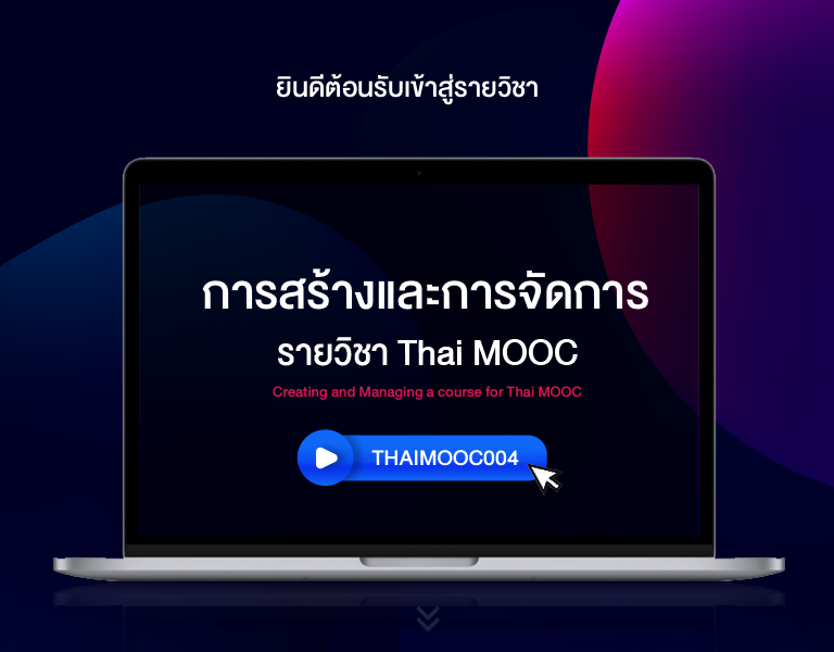 รายวิชา Thai MOOC 004 เป็นรายวิชาที่จะแนะนำผู้เรียนให้รู้จักระบบจัดการเรียนการสอนออนไลน์ของ Thai MOOC การสร้างรายวิชา การกำหนดโครงสร้างรายวิชา การกำหนดคุณสมบัติ และตั้งค่าในรายวิชา การสร้างกิจกรรมการเรียนรู้รูปแบบต่าง ๆ เครื่องมือ HTML Component และ Problem Component ที่จะช่วยส่งเสริมกิจกรรมการเรียนรู้ในรายวิชา การสร้าง Certificate และการบริหารรายวิชาเมื่อมีการจัดการเรียนการสอน